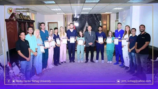 استقبل الدكتور حسان النعماني رئيس جامعة سوهاج وفدًا طلابي اجنبي من كليات الطب من دول”اسبانيا، فرنسا، إيطاليا، جمهورية التشيك، سلوڤينيا، رومانيا، البرازيل، كازاخستان، والهند”، وذلك ضمن برنامج التبادل الطلابي بالجامعة، والذي يهدف الي إثراء الحركة العلمية و البحثية وزيادة فرص تبادل الخبرات، و مواكبة كل ما هو جديد في مختلف التخصصات العلمية و الطبية.