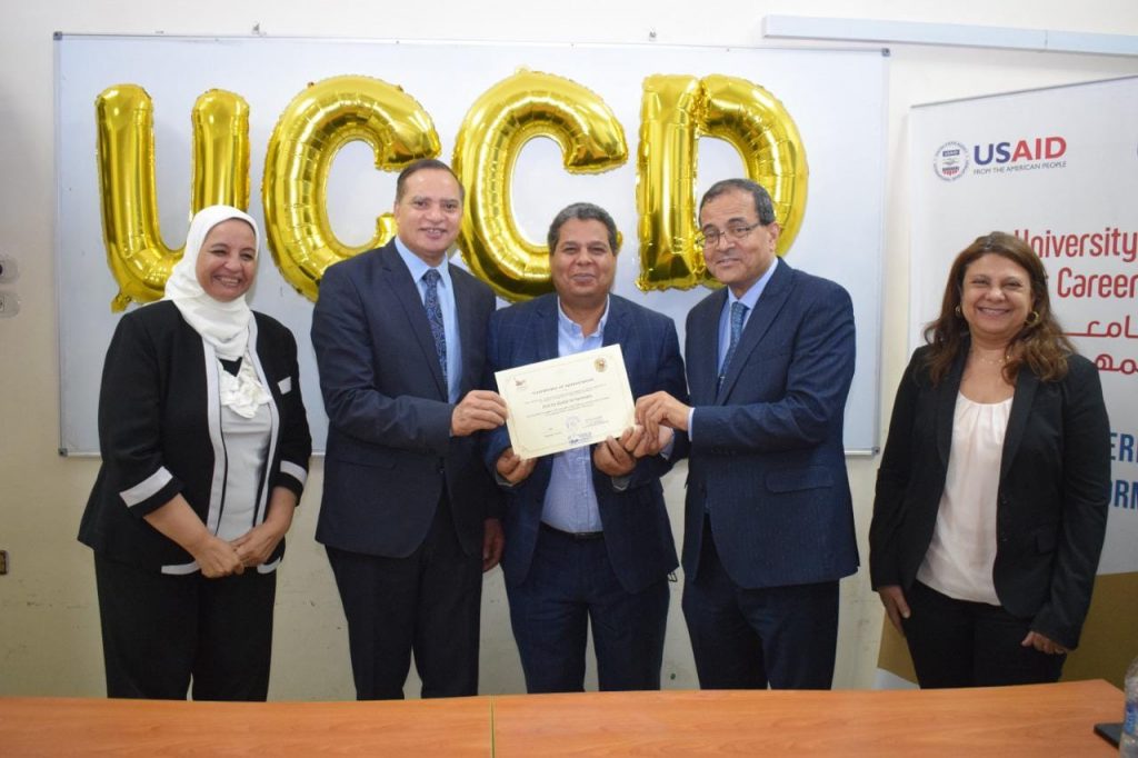 وفي بداية كلمته، أشاد الدكتور مصطفى عبد الخالق، بالتعاون المثمر والبناء مع الوكالة الأمريكية للتنمية الدولية والجامعة الأمريكية بالقاهرة، لإنشاء مركز التطوير المهني، والذي يعد بمثابة إضافة قوية للجامعة، نظراً لما يقدمه من مجموعة متكاملة من الخدمات والتدريبات في مجالات الإدارة المهنية وريادة الأعمال، والتي تهدف إلى زيادة قدرات الخريجين التنافسية وإعدادهم لمتطلبات سوق العمل، لافتاً إلى أن الجامعة تسعي جاهدة لتسخير كل الإمكانيات المادية والبشرية لتحقيق غايات وأهداف المركز، والذي ساهم في بناء شراكات وبروتوكولات تعاون جديدة مع عدد من الشركات والمصانع والمؤسسات التعليمية الحكومية والخاصة، لتوفير عدد من فرص العمل للخريجين، ليصبحوا مواطنين منتجين في مجتمعاتهم ويسهموا في تنمية بلادهم مستقبلاً.