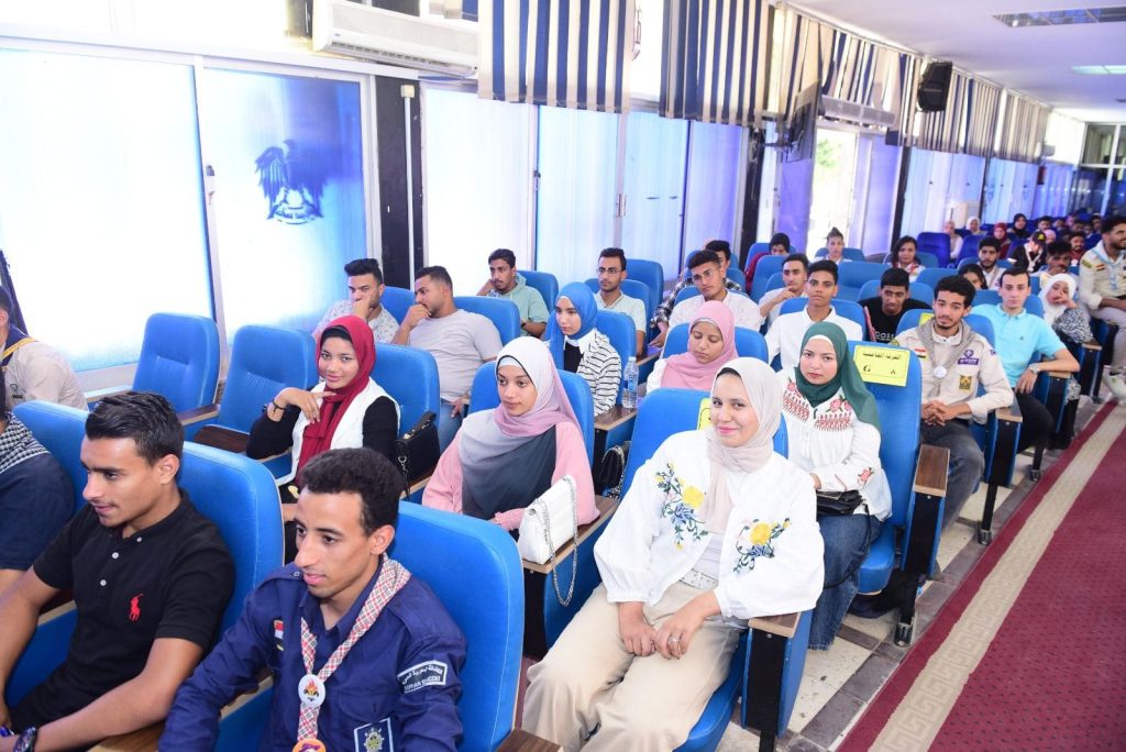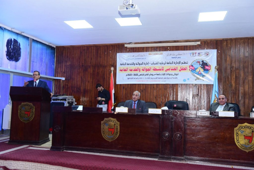 وفى بداية الحفل، ألقى الدكتور مصطفي عبد الخالق كلمة هنأ فيها جوالي وجوالات كليات الجامعة على تميزهم فى مختلف الفعاليات التى تم تنفيذها على مدار العام الدراسي الحالي، والتى شملت إقامة معسكرات اختيار عشيرة الجوالة، معسكرات الخدمة العامة، تنظيم المهرجان الكشفي والارشادي، تنفيذ ندوات توعوية وتثقيفية، وأيضاً تنظيم مسابقات فنية ورياضية وثقافية، مؤكداً على أن مثل تلك الأنشطة تعمل على تفريغ طاقات الشباب وتنمية مهاراتهم البدنية والفكرية، وبناء جيل جديد قادر على العطاء وخدمة المجتمع ومحاربة الأفكار الهدامة، مقدماً الشكر لمسئولي إدارت رعاية الشباب على جهودهم المستمرة، وتنفيذهم لكافة الفعاليات بالشكل الأمثل الذى يليق باسم الجامعة.