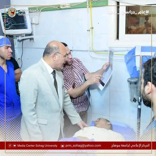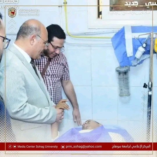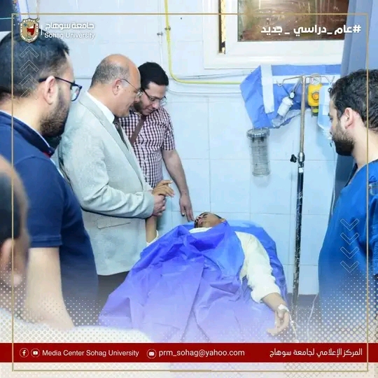 رئيس جامعة سوهاج يطمئن على الوضع الصحى للطلاب المصابين خلال حادث سير ويؤكد أستقرار حالاتهم الصحية