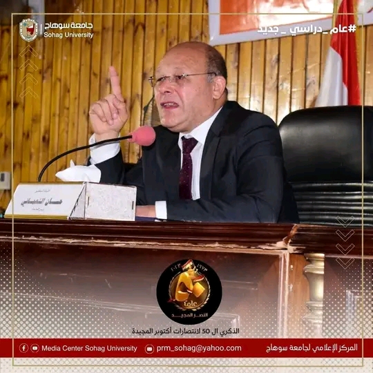 واستهل رئيس الجامعة كلمته، بتقديم التهنئة لجميع أفراد المجتمع الجامعي بمناسبة بدء العام الدراسي الجديد، والذي يتزامن مع الذكرى العطرة للمولد النبوي الشريف، وأيضاً الإحتفال باليوبيل الذهبي لذكري إنتصارات حرب أكتوبر المجيدة، داعياً المولى أن يعيد على الشعب المصري تلك المناسبات بالخير والبركة، معرباً عن فخره لمشاركته فى فعاليات مؤتمر “حكاية وطن”، والذى نظم على مدار ٣ أيام بالعاصمة الإدارية وما حققه من نجاحات على كافة الأصعدة، انتهت بإعلان فخامة الرئيس عبد الفتاح السيسى رئيس الجمهورية، بعزمه الترشح لفترة إنتخابية جديدة، استجابةََ لرغبة الشعب المصري العظيم.