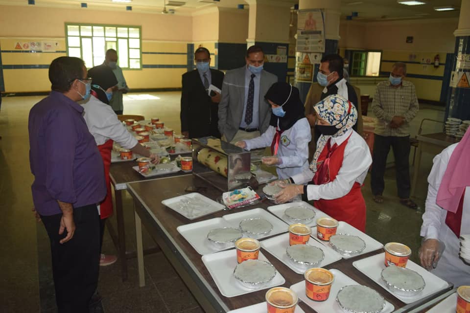 كما عاين الدكتور أحمد عزيز مراحل طهي الطعام وطرق التغليف السليمة للوجبات، وتأكد من فترة صلاحية المنتجات وجودتها ومحتويات كل وجبة ومطابقتها للكمية والوزن، حسب الجدول اليومي المعد بذلك، مكلفاََ إدارة المطعم بتعليب الوجبات المقدمة للطلاب خارج صالات الطعام، والتخلص الآمن من بقايا الطعام حسب الشروط الصحية والبيئية.