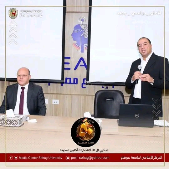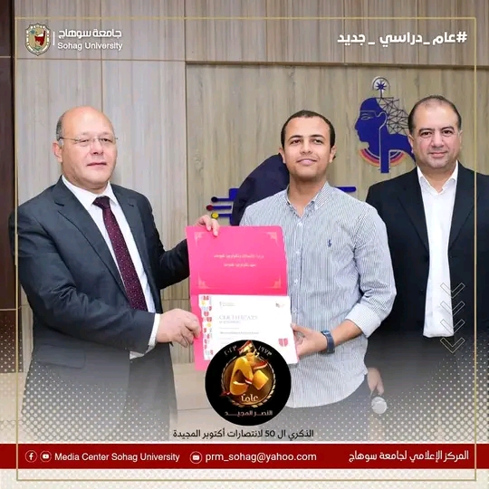 كرم الدكتور حسان النعماني رئيس جامعة سوهاج، أعضاء هيئة التدريس بكلية التجارة المشاركين ببرنامج سفراء التكنولوجيا، بالإضافة إلى ٢٢٠ طالب وطالبة بمختلف الكليات لإجتيازهم برامج التدريب الصيفي للعام الجامعي ٢٠٢٢/ ٢٠٢٣، وذلك بمركز إبداع مصر الرقمية بمقر الجامعة الجديد، بحضور الدكتور عبد الناصر يس نائب رئيس الجامعة لشئون التعليم والطلاب، والدكتور خالد عمران نائب رئيس الجامعة لشئون خدمة المجتمع وتنمية البيئة و المهندس أحمد صلاح مدير المركز وعدد من عمداء الكليات وأعضاء هيئة التدريس والطلاب .