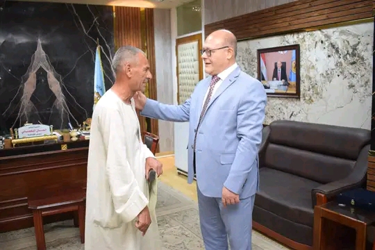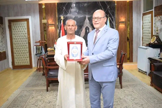 رئيس جامعة سوهاج يكرم طالب الثانوية العامة البالغ من العمر ٦٢ عام ويقرر إعفائه من رسوم المدينة الجامعية