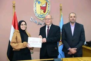 وجدير بالذكر ان المكرمبن هم كريمة الرفاعي بمكتب نائب رئيس الجامعة لشئون الدراسات العليا والبحوث، والتي شاركت بنشر كتاب بعنوان “الاقتصاد عبر المجتمع الشبكي”،