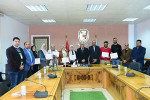 كرم الدكتور حسان النعماني رئيس جامعة سوهاج، ٧ من منتسبي الجامعة لمشاركتهم بالنشر في معرض القاهرة الدولي للكتاب في دورته ال٥٥، تقديراً لمجهوداتهم الأدبىة والفنية، وذلك بمقر قاعة مجلس الجامعة بالحرم الجامعي القديم.