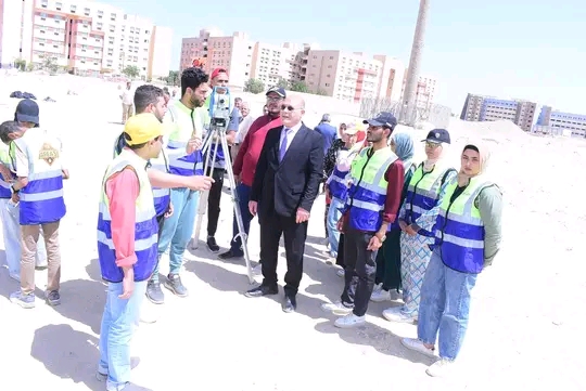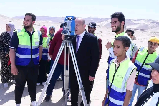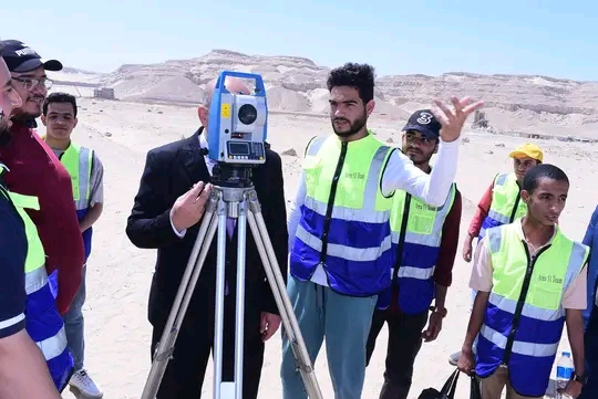 رئيس جامعة سوهاج يلتقي مع طلاب برنامج المساحة والخرائط بكلية الآداب خلال التطبيق العملي والميداني للمشروع المساحى