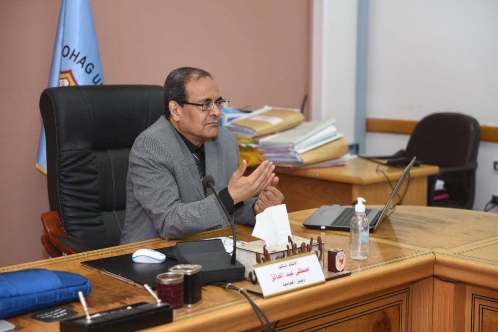 اجتمع الدكتور مصطفي عبد الخالق رئيس جامعة سوهاج، مع أعضاء لجنة الخطة الإستراتيجية لمواجهة التغييرات المناخية، بحضور نخبة من أعضاء اللجنة من داخل وخارج الجامعة، وذلك بقاعة مجلس الجامعة، لمناقشة وعرض ما تم إنجازه في محاور الخطة الإستراتيجية لمواجهة التغييرات المناخية بالمحافظة.