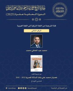 هنأ الدكتور حسان النعماني رئيس جامعة سوهاج، الدكتور محمد عبد العاطي المدرس بقسم اللغات الشرقية بكلية الآداب، لحصوله على المركز الثاني بالدورة الحادية عشر لجائزة “الشيخ حمد” للترجمة والتفاهم الدولي لعام 2025، التي أقيمت بالعاصمة القطرية الدوحة، وذلك فى فئة الترجمة من التركية للعربية، حيث حصد الجائزة لترجمته كتاب (عصيان محمد علي باشا – المسألة المصرية 1831 _1841) لشناسي آلتونداغ.