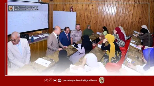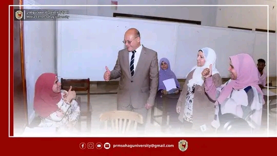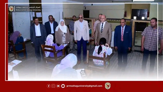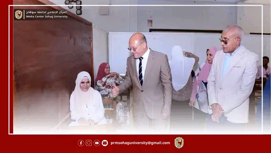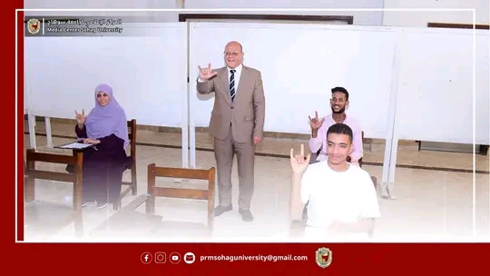 رئيس جامعة سوهاج يواصل متابعة سير امتحانات الفصل الدراسي الثاني بكلية التربية النوعية ويطمئن علي الطلاب الصم بقسم الإعلام التربوي