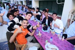 ووجه الدكتور حازم المشنب، الشكر لرئيس الجامعة لمشاركته والتواصل الدائم مع جميع منسوبي الكلية، مضيفاً ان الافطار شمل ايضا الطلاب الوافدين، حيث تحرص إدارة الكلية علي دعم و رعاية أبنائها الوافدين ضيوف مصر، و يعد هذا التجمع فرصة جيدة للتواصل والتفاعل بين الطلاب وبعضها البعض.