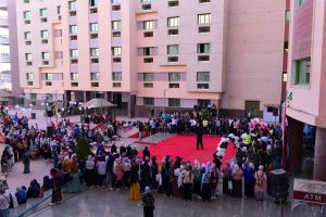 ورحب الدكتور مصطفي عبد الخالق، خلال كلمته بالطلاب الجدد والقدامي، مؤكداً على أن إدارة الجامعة توفر كافة الاحتياجات والامكانيات لدعم الطلاب ونجاح العملية التعليمية، وحث الطلاب بسرعه تلقي لقاح فيروس كورونا، مع ضرورة الالتزام بالإجراءات الاحترازية المتبعة لمنع الإصابة به، مطالبهم ببذل الجهد والعمل والاجتهاد لتحقيق التفوق والنجاح.