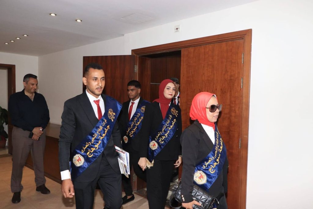 نظمت جامعة سوهاج زيارة ميدانية للمركز الاعلامي لادارة الشئون المعنوية، بمشاركة ٥٠ طالب وطالبة، وذلك بالتعاون مع قوات الدفاع الشعبي العسكري، بحضور الدكتور خالد عمران نائب رئيس الجامعة لشئون خدمة المجتمع وتنمية البيئة، عميد إبراهيم عطية إبراهيم قائد المركز الإعلامي العسكري بإلادارة، المقدم أحمد صفوت مدير إدارة التربية العسكرية بالجامعة، والدكتور أحمد عاطف مدير رعايه الشباب المركزية.