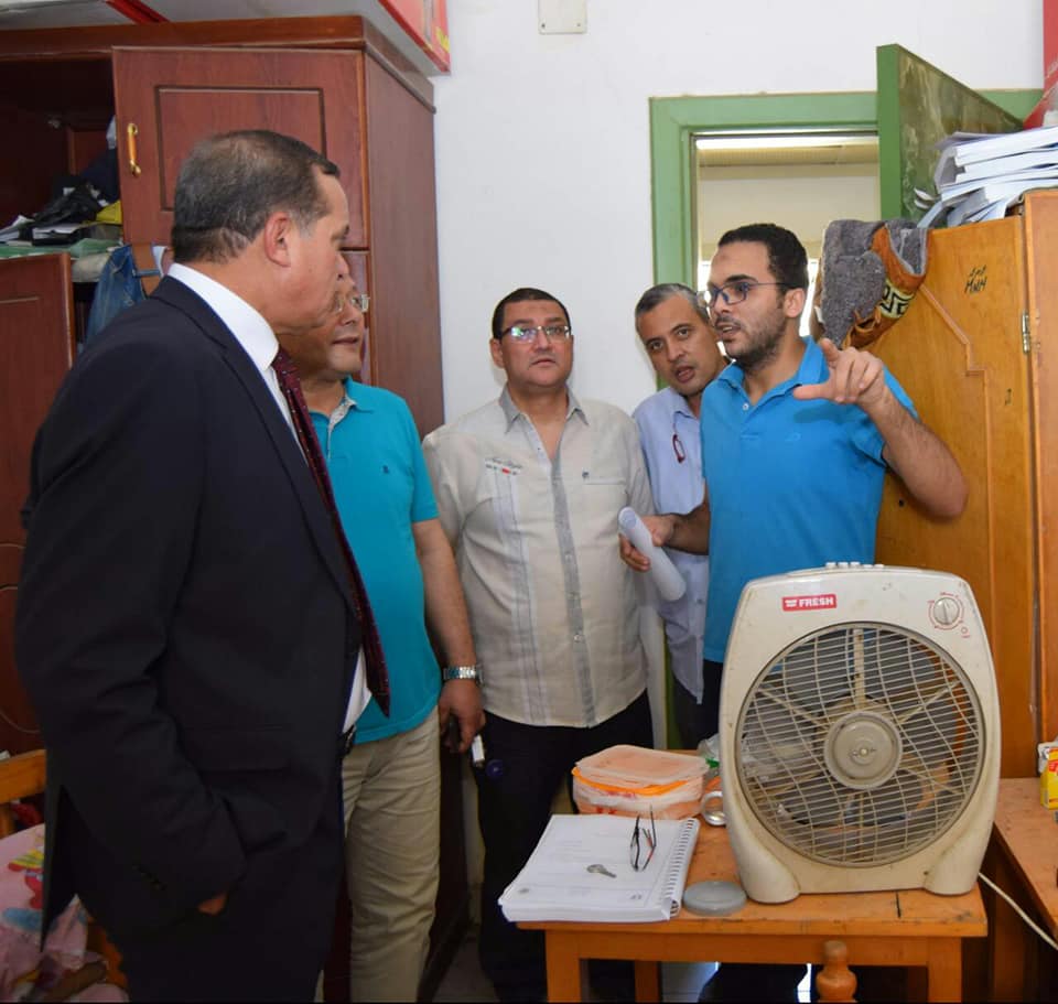 واصدر الدكتور احمد عزيز خلال جولته تعليماته بتجهيز غرف الاستراحة باجهزة التكييف، وتوفير المراوح للتهوية، واجراء عمليات الصيانه وغير ذلك من التجهيزات التي تتيح اقامه جيدة للاطباء، وذلك من اجل تهيئة المناخ المناسب لهم ، بالاضافه الي توفير اجهزة للتهوية داخل عنابر المرضي بالقسم المجاني والاستقبال.