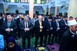 وعقب صلاة العيد توجه وفد من الجامعة برئاسة الدكتور حسان النعماني الي ديوان عام المحافظة لتقديم التهنئة