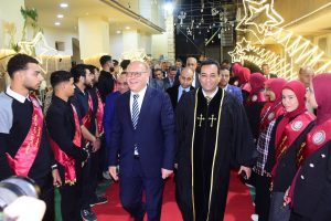 قدم كلا من الانبا باخوم والقس مايكل والانبا توما خالص الشكر والتقدير للدكتور حسان النعماني رئيس الجامعة الذي يحرص سنويا علي مشاركتهم بأعيادهم، والذي وتؤكد عمق العلاقات الطيبة بين الجامعة ومؤسسات المجتمع الديني، ورسالة قوية بأن الجامعة بيت لكل أبناء الوطن، داعين الله أن يبارك جهوده، ويمنحه دوام النجاح والتوفيق في خدمة الوطن وأبنائه، وأن يديم على وطننا الغالي نعمة المحبة والسلام.