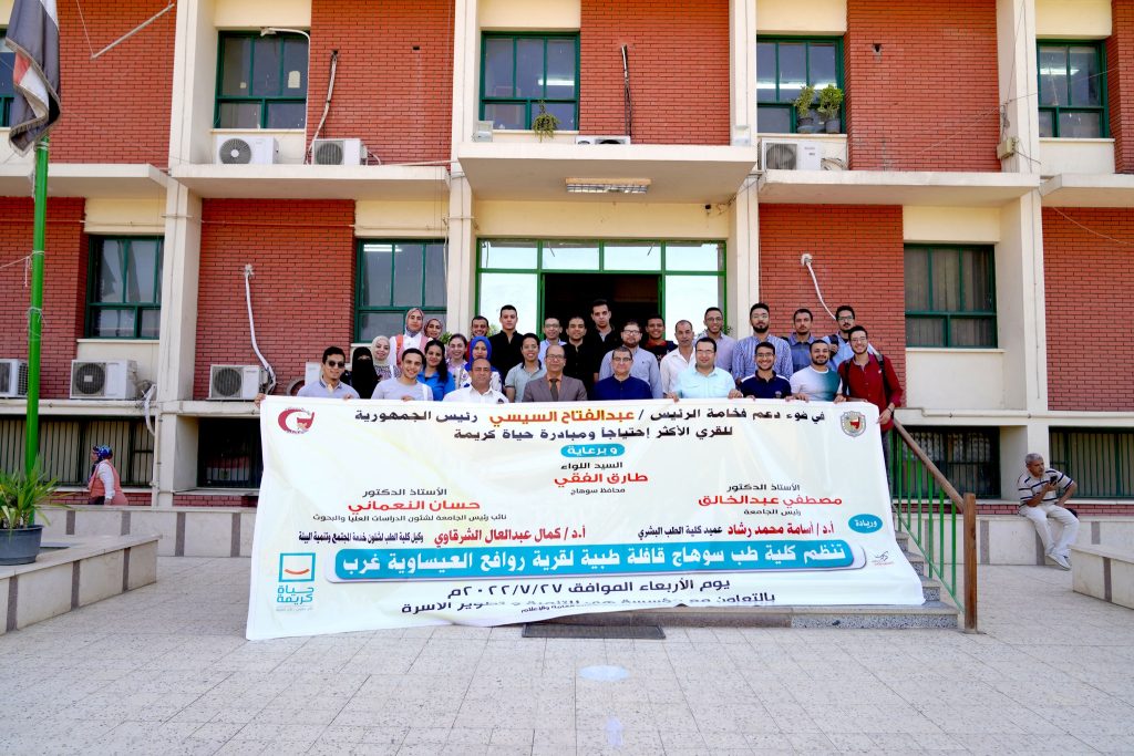 يواصل قطاع خدمة المجتمع وتنمية البيئة بكلية الطب البشري بجامعة سوهاج، تنظيم القوافل الطبية لخدمة القري الأكثر احتياجاً، صرح بذلك الدكتور مصطفي عبدالخالق رئيس الجامعة، مضيفاً أنه تم اطلاق قافلة طبية لخدمة أهالي قرية روافع العيساوية بمركز المنشاه، وذلك بالتعاون مع مؤسسة هي للتنمية وتطوير الأسرة، وبالتنسيق مع جمعية شباب روافع العيساوية للتنمية.