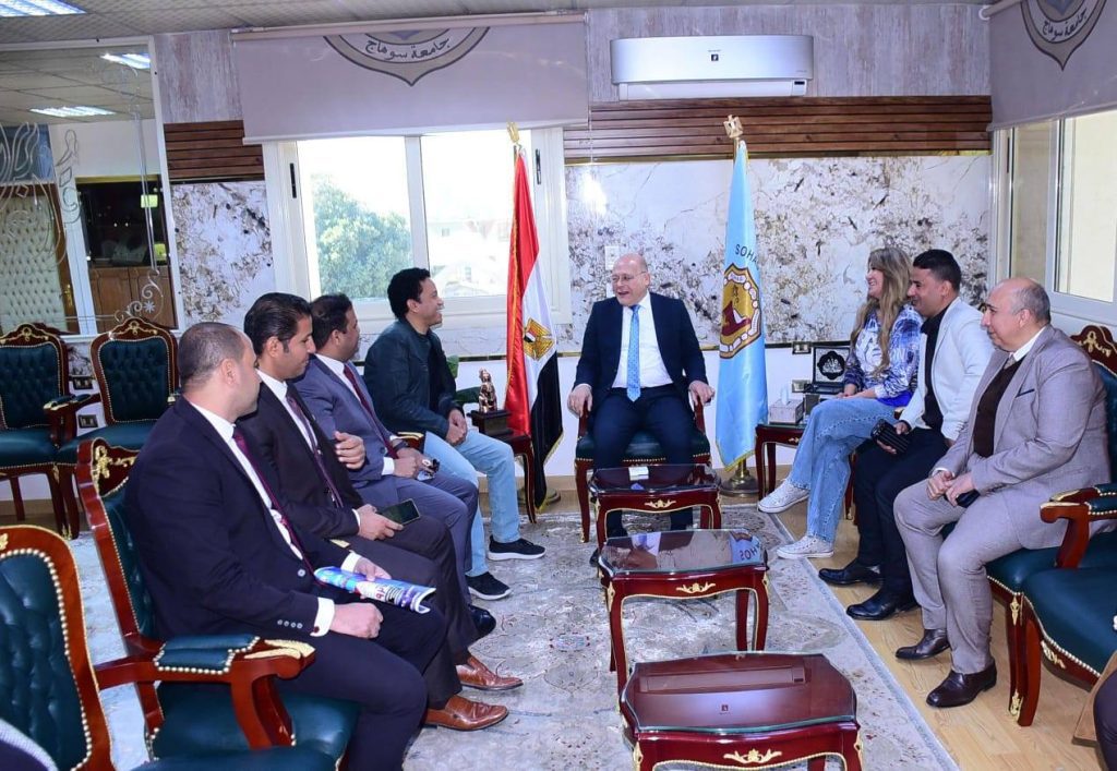 استقبل الدكتور حسان النعماني رئيس جامعة سوهاج الفنان سامح حسين والفنانه لقاء سويدان اعضاء لجنه تحكيم المهرجان السادس “تياترو” للعروض المسرحية، والذي تنظمه إدارة النشاط الثقافي والفني بالإدارة العامة لرعاية الشباب المركزية، بمشاركة ١٧٠ طالب وطالبة، يمثلون ١٢ كلية من كليات الجامعة، وذلك على مسرح قاعة المؤتمرات الكبرى بالحرم الجامعي القديم.