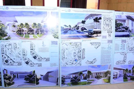 كما أثنى الدكتور عبد الناصر يس على الجهد المبذول من الطلاب في تصميم مشروعات التخرج،التي بلغ عددها هذا العام ١٠ مشروع تخرج، شارك بها ٢٢٧ طالب وطالبة من أقسام الهندسة المعمارية والمدنية والكهربية، حيث قام الطلاب بعرض تطبيقات أفكارهم العلمية متضمنة أحدث ما وصل إليه العلم في تخصصاتهم، وذلك في تقنيات الإتصالات والإلكترونيات والتحكم الكهربي.