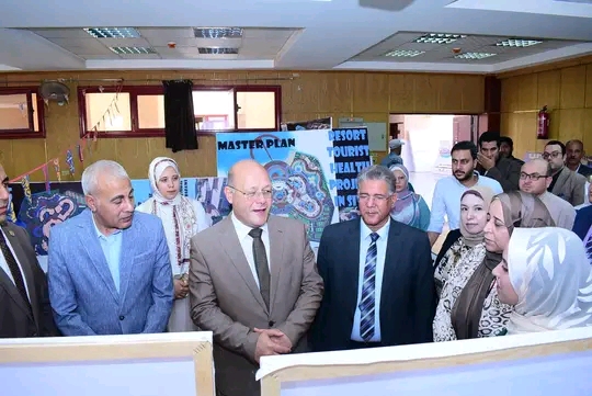وأوضح الدكتور أحمد قاسم أن طلاب قسم الهندسة المعمارية قدموا تصميمات هندسية متكاملة لتخطيط وتصميم قرية للسياحة العلاجية بواحة سيوة ومشروع آخر لتصميم قرية سياحية ذكية، كما تم مناقشة أيضا مشروعات التخرج لطلاب قسم الهندسة المدنية في تخصصاتها المختلفة مثل المنشأت الخرسانية والطرق والصرف الصحي والمياه.