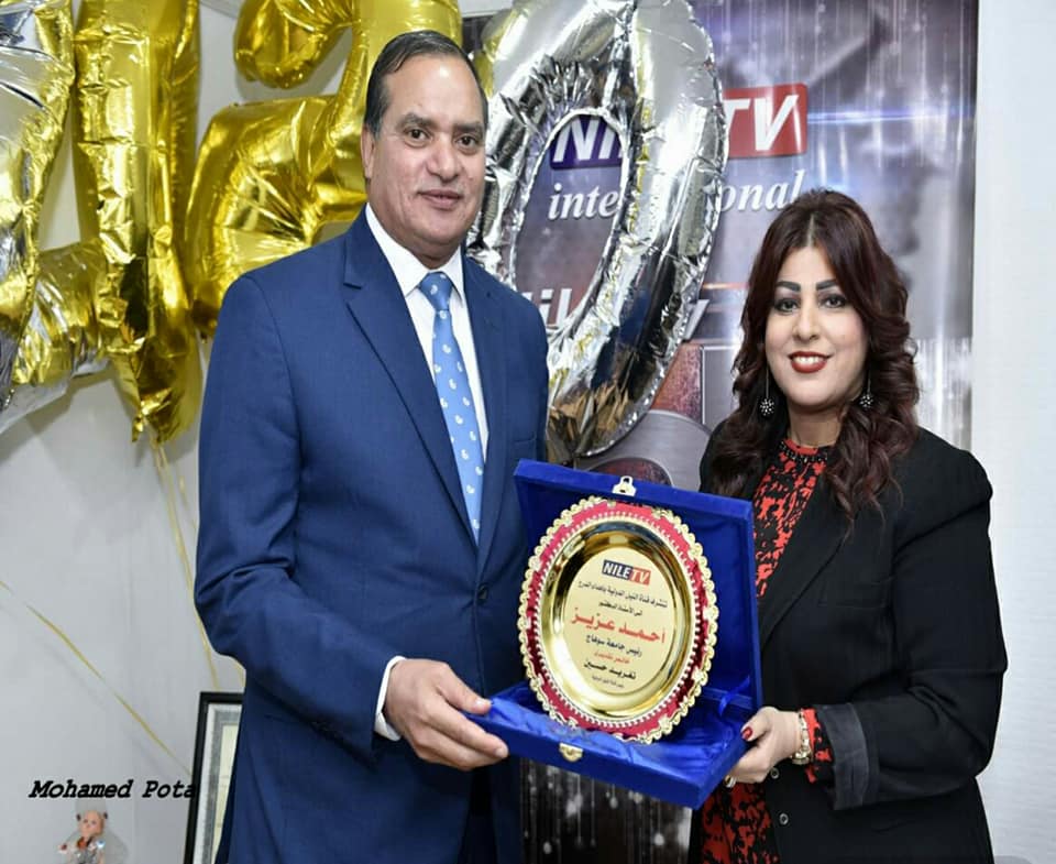 كرمت قناة النيل الدولية برئاسة الاعلامية تغريد حسين رئيس القناة، الدكتور احمد عزيز رئيس جامعة سوهاج وذلك في اطار جهوده للارتقاء بالجامعة ورفع ترتيبها في التصنيفات الدولية، وتسخير الامكانيات للارتقاء بقدرات الطلاب وتهيئتهم لسوق العمل عن طريق تفعيل العديد من المراكز التدريبية، بالاضافة الي المشاركة المجتمعية للجامعة في المبادرات الرئاسية، 100 مليون صحة، صنايعية مصر، حياة كريمة، القضاء علي قوائم الانتظار .