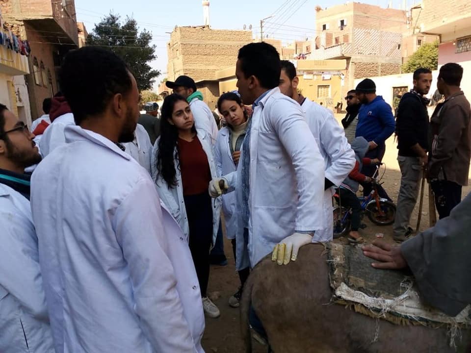 نفذت كلية الطب البيطري بجامعة سوهاج قافلتين بيطريين لقريتي الرويهيب و بلصفورة، وذلك بالتعاون مع مديرية الطب البيطري بالمحافظة، حيث بلغ عدد الحالات المرضية التي تم فحصها وعلاجها بالقريتين ١١٣٠ حالة. صرح بذلك الدكتور أحمد عزيز رئيس الجامعة، وقال أن الجامعة تحرص باستمرار علي تنفيذ العديد من القوافل البيطرية والتي لها دور هام في تحسين الثروة الحيوانية والداجنة في نطاقها الإقليمي، بالإضافة إلى دورها في التدريب العملي للطلاب علي كيفية التعامل مع الحالات المرضية للحيوانات وطرق التواصل مع المربين وأصحاب الحالات، وذلك لتأهيليهم لسوق العمل البيطري بعد التخرج.
