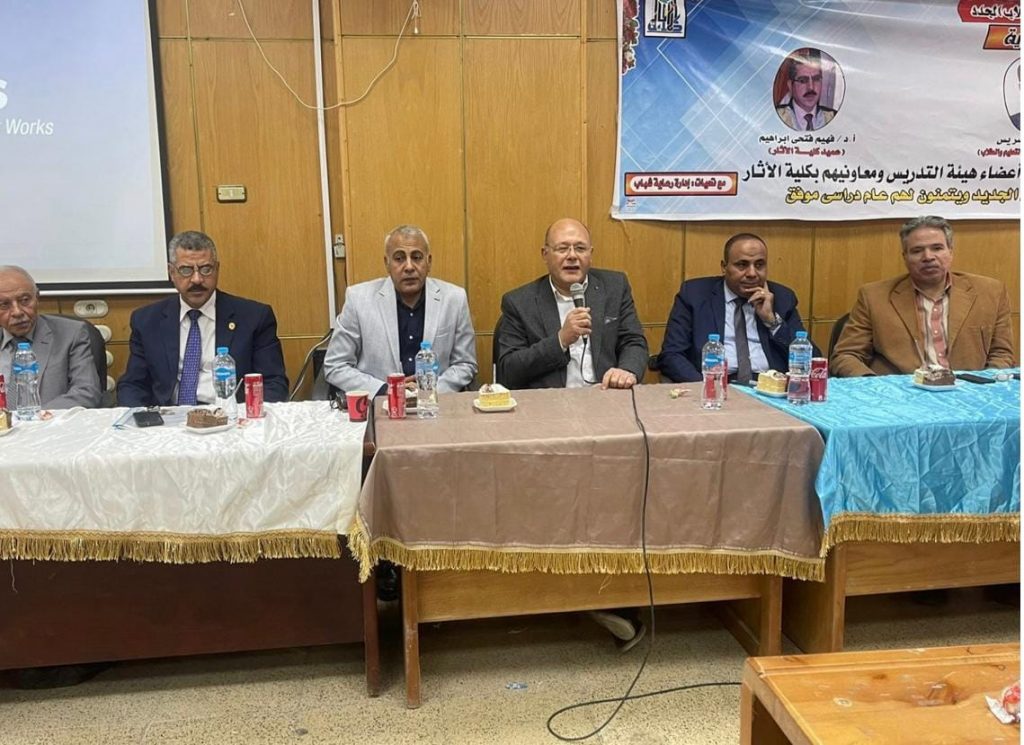 وفي كلمته هنأ الدكتور حسان النعماني طلاب الكلية الجدد والقدامي، مؤكداً ان طلاب كليات الآثار هو من سيمثلون مستقبل مصر في قطاع الآثار، ودعاهم للعمل المستمر بعزيمة وإصرار، والتسلح بالعلم والمعرفة حتي يكونوا قادرين علي المنافسة فى سوق العمل محلياً وإقليمياً، مشيداً بجهود طلاب من أجل مصر واتحاد الطلاب ورعاية الشباب بالكلية في تنظيم هذا الحفل.