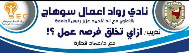 ينظم،اليوم، نادي رواد أعمال سوهاج بالتعاون مع جامعة سوهاج، التدريب المجاني تحت عنوان كيف تخلق لنفسك فرصه عمل  وذلك  في تمام الساعة الواجدة ظهرًا بالقاعة الزجاجية بالحرم الجامعي القديم    .