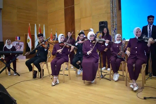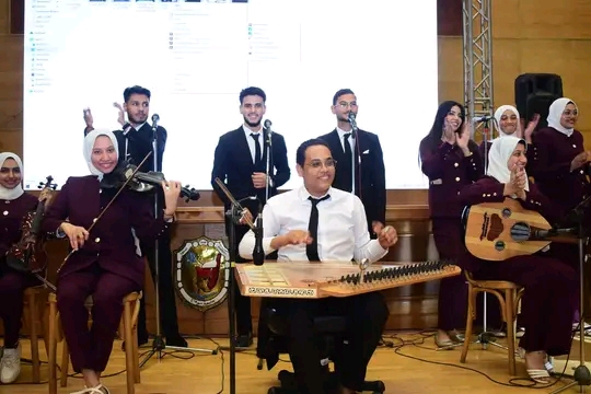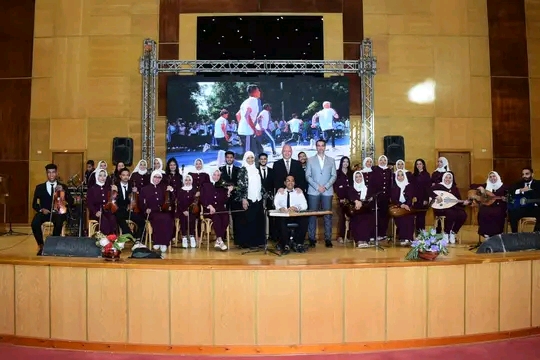 وجدير بالذكر ان الحفل تناول عدداً من الفقرات الفنية لكورال طلاب كلية التربية النوعية بالجامعة تناولت عدد من الأغاني الوطنية.