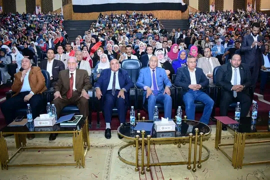 واستهل الدكتور أشرف ذكي كلمته، بتقديم كلمات الشكر والتقدير للدكتور حسان النعماني وجميع منسوبي الجامعة على حفاوة الاستقبال وكرم الضيافة، معرباً عن فخره واعتزازه بتواجده فى رحاب جامعة سوهاج هذا الصرح العريق ذو المكانة الرفيعة، متحدثا عن دور الفن ورسالته الهادفة للرقي بالإنسان وتهذيب الوجدان وتوسيع الآفاق البشرية، وهو أيضاً وسيلة فاعلة لتعزيز التجربة الإنسانية، وصقل الخبرات وتعزيز القيم البناءة، حيث يعد الفن وسيلة فعالة للتعبير عن مكنونات النفس، وله دور هام فى بث مشاعر الاعتزاز لدى الأفراد بتاريخهم والتراث الثقافي والهوية المصرية، وكذلك التثقيف بتاريخ الأمم والشعوب والتعريف بتاريخ الحضارات، مضيفاً أن الفنون بشكل عام تلعب دور هام فى معالجة العديد من قضايا المجتمع، وعرض تطور الدول والمجتمعات عبر التاريخ، وذلك من خلال ما يتم مناقشته فى الأعمال الفنية المقدمة على شاشة التلفزيون أو المذاعة على قنوات الإذاعة، موجهاً الشباب بمواصلة العمل والاجتهاد للوصول إلى أهدافهم وتحقيق آمالهم واحلامهم، والإصرار على النجاح مهما كانت الصعاب والتحديات.