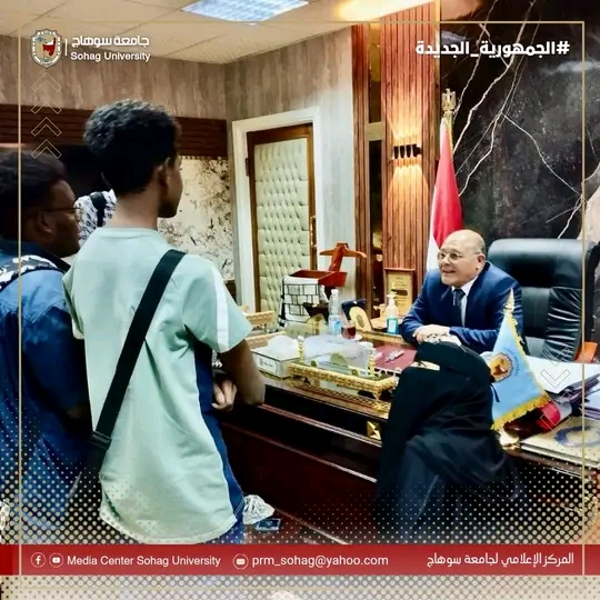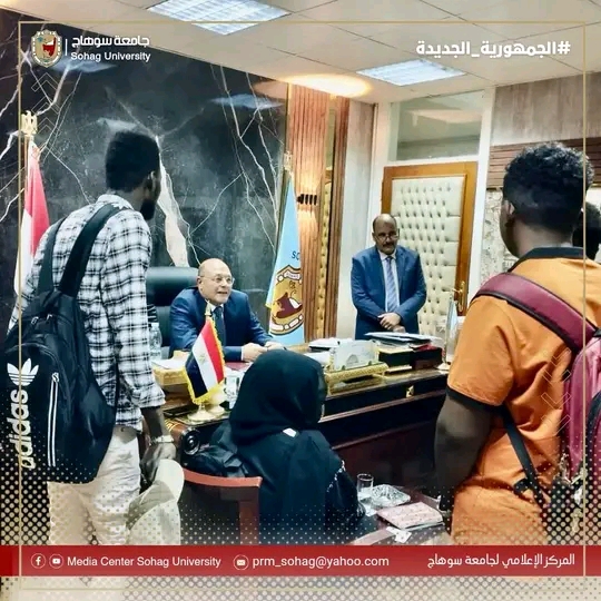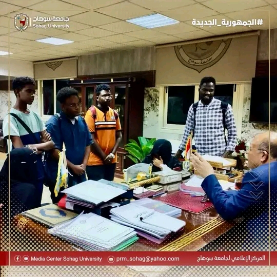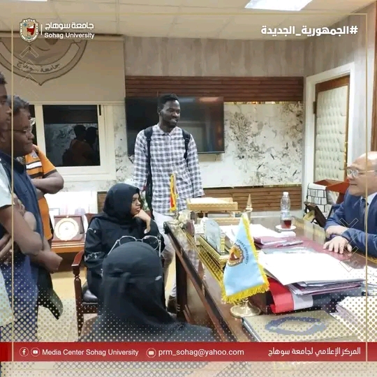ألتقي الدكتور حسان النعماني رئيس جامعة سوهاج مع عدد من الطلاب الوافدين من دولة السودان الشقيق بكلية الطب، وذلك لبحث متطلباتهم واحتياجاتهم، خلال الفترة القادمة، وذلك بمكتب رئيس الجامعة بالمقر القديم.