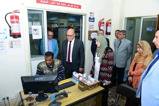 جاء ذلك خلال تفقد رئيس الجامعة لسير العمل داخل مكتبة كليتي العلوم والطب البشري داخل مبني الخدمات بالحرم الجامعي القديم، يرافقه الدكتور مجدي امين القاضي عميد كلية الطب البشري، وايمان كامل احمد مدير مكتبه كلية الطب، ومحمد مختار مدير مكتبه كلية العلوم وعدد من أعضاء هيئة التدريس بالجامعة.