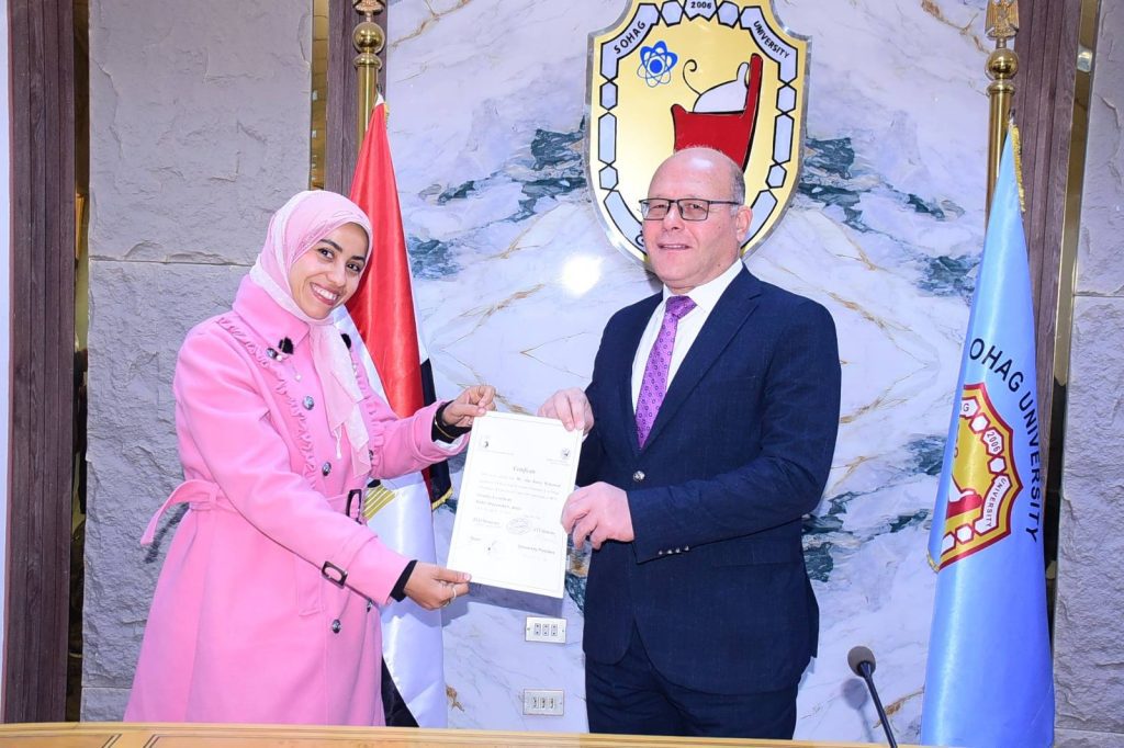 كرّم الدكتور حسان النعماني رئيس جامعة سوهاج العاملين بالجهاز الإداري المجتازين لدورة اللغة الإنجليزية، والتي نظمتها إدارة التطوير والجودة ضمن خطة الجامعة لتعزيز منظومة الجودة ورفع كفاءة الموارد البشرية، بحضور الدكتور ياسر عبدالفتاح أمين الجامعة المساعد والدكتور محمد عبد الحميد مدير مركز اللغات، وهند احمد علي يوسف مدير الإدارة.