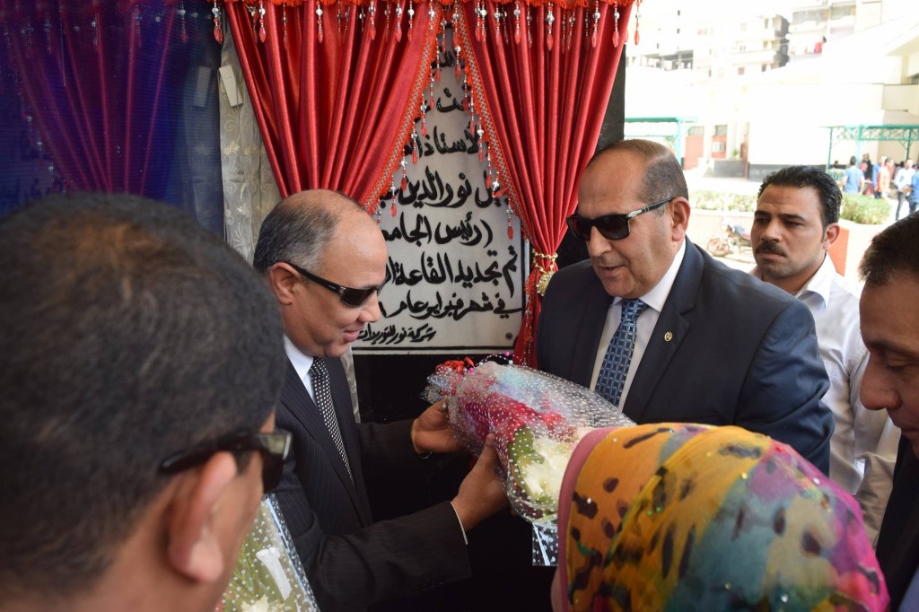 د. نبيل نور الدين عبداللاه رئيس جامعة سوهاج يصاحبه د. أيمن عبد المنعم محافظ الإقليم والسادة عمداء الكليات وأعضاء مجلس الجامعة قاعة المؤتمرات الزجاجية بعد تجديدها , وذلك اليوم 29 فبراير 2016 , وأضاف نور الدين أن الجامعة تحرص علي إعداد كافة القاعات بالشكل الذي يتناسب مع العملية التعليمية سواء القاعات الموجودة بالفعل أو القاعات التي يتم إنشاؤها حديثا ً .