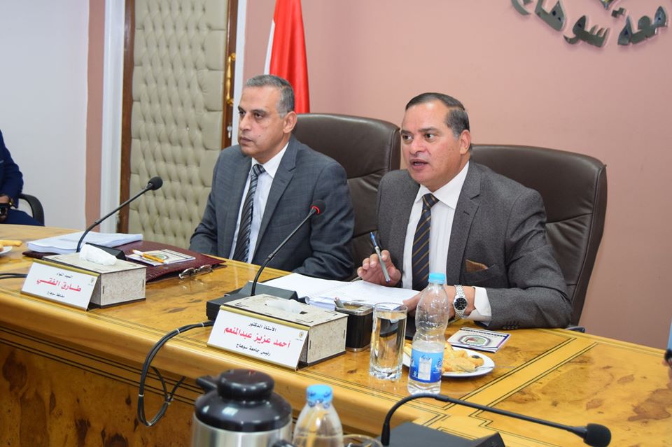 عقد مجلس جامعة سوهاج جلسته الشهرية رقم 151 برئاسة الدكتور أحمد عزيز عبد المنعم رئيس الجامعة، وبحضور اللواء طارق الفقي محافظ الإقليم، وذلك بمبني الادارة المركزية بالحرم القديم .
