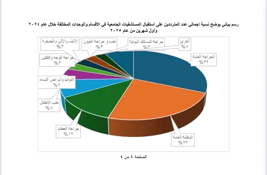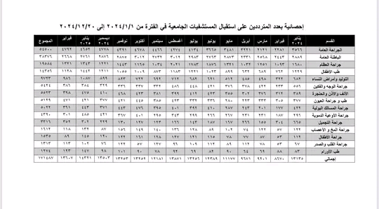 وفيما يلي إحصائية بعدد المترددين علي الأقسام المختلفة بالمستشفيات الجامعية: