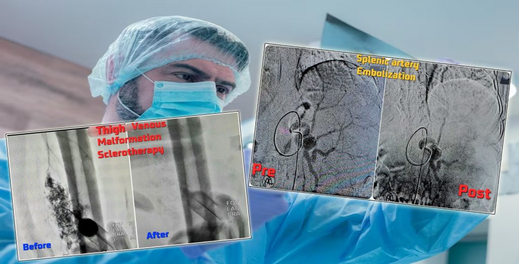 ، منها خدمة مرضي الطوارئ والحوادث والنزيف بإجراء القسطرة الشريانيه لنزيف الكلي والجهاز الهضمي، وتركيب قسطرة الغسيل الكلوي المستديمة (البيرمكاث)، وقسطرة التصريف المراري لانسداد القنوات المرارية وبذل التجمعات والسوائل من البطن.