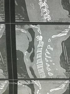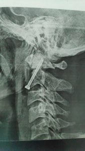 واوضح الدكتور حمدي سعد مدير المستشفي الجامعي انه بعد اجراء الفحوصات والاشاعات اللازمة للمريض تبين وجود كسر في الفقرة الثانية من العمود الفقري الرقبي، ويحتاج إلى جراحة عاجلة لتثبيت الفقرة العنقية، حيث كان هذا الكسر يشكل خطراً كبيراً على النخاع الشوكي وحياه المريض.