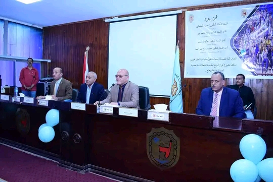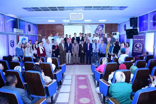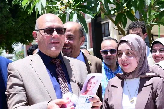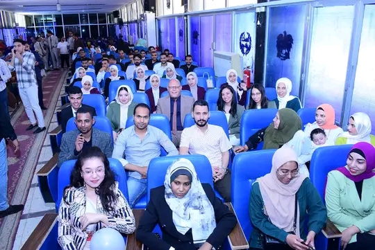 الدكتور مصطفى أبو العز المشرف الأكاديمي للإتحاد المصري لطلاب صيدلة، وعدد من أعضاء هيئةالتدريس ومعاونيهم والطلاب، وذلك بمقر القاعة الزجاجية بالحرم الجامعي القديم.