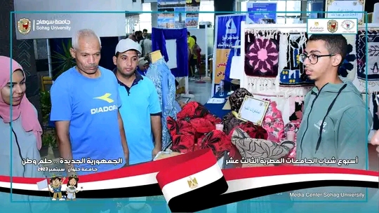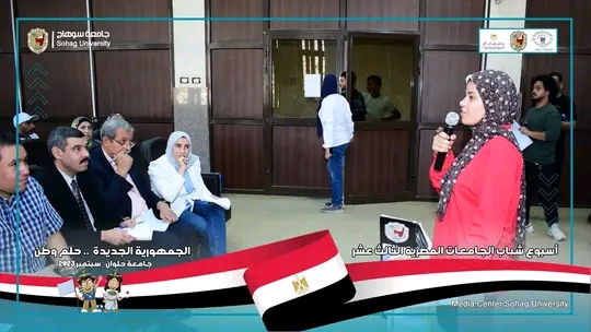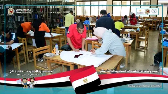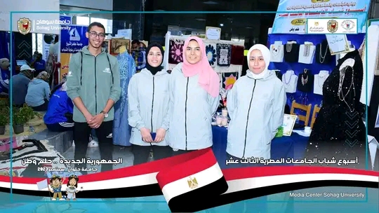 ضمن منافسات النشاط العلمي مشاركة جامعة سوهاج باسبوع شباب الجامعات الثالث عشر بجامعة حلوان في مسابقة أفضل بوستر والروبوت وأفضل معرض.
