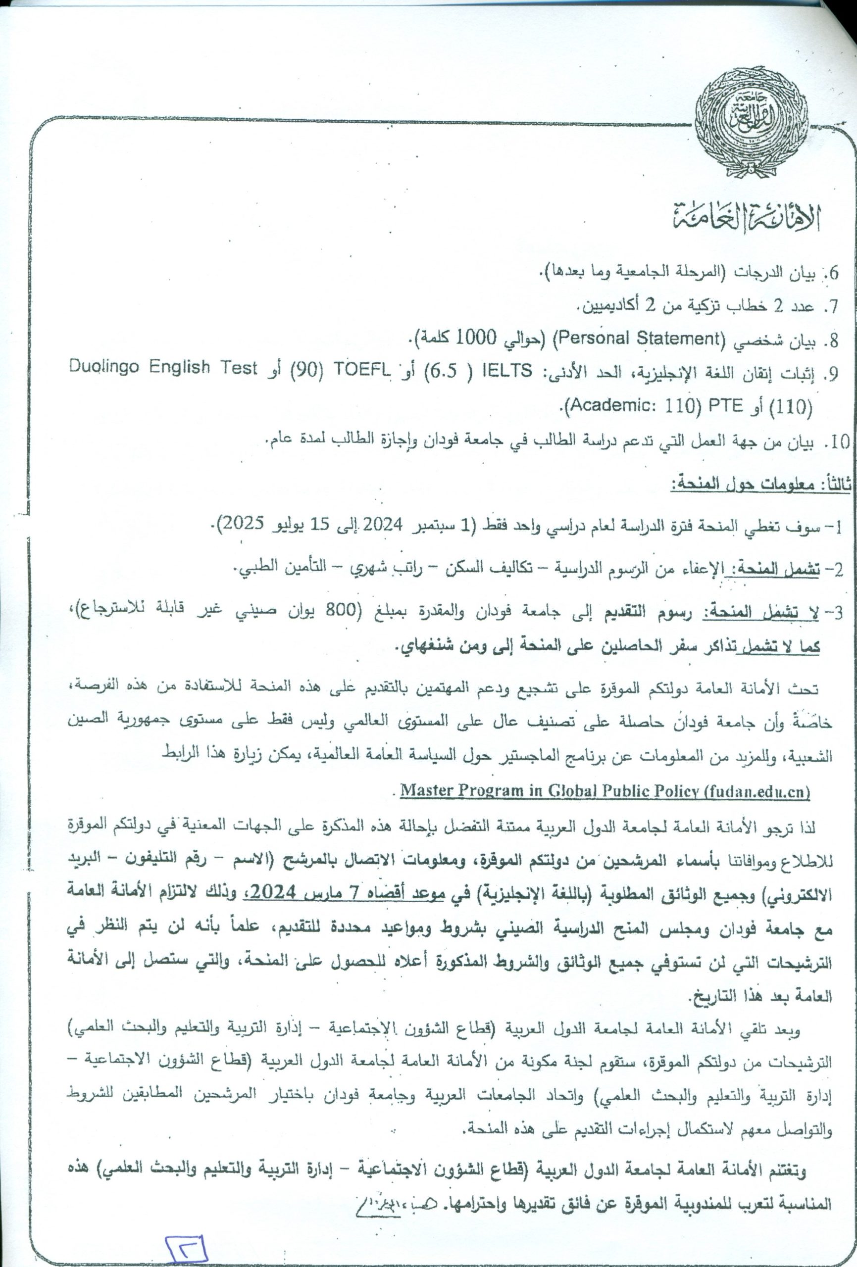 لذا ترجو الامانة العامة لجامعة الدول العربية قطاع الشئون الاجتماعية ادارة التربية و البحث العلمى موافاتها بالترشيحات وفقا للشروط المذكورة بالصور فى موعد أقصاه 7 مارس 2024 .