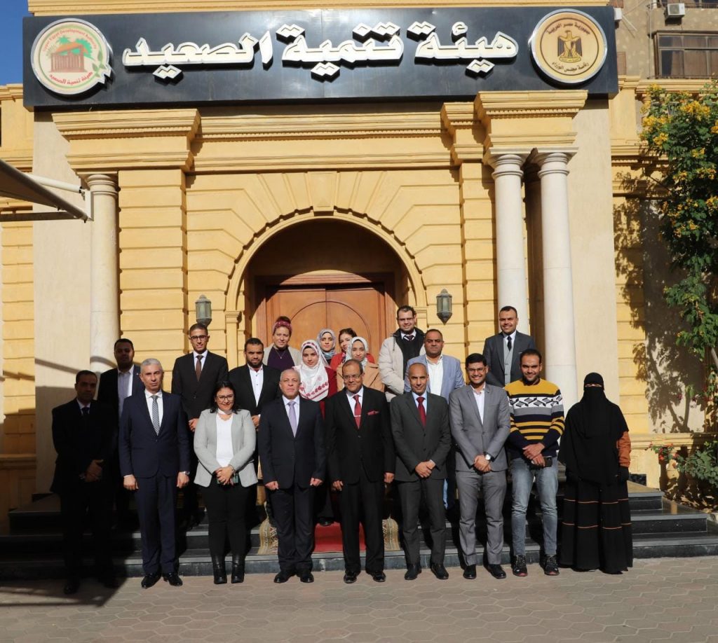 استقبل لواء أ.ح.م/ شريف صالح رئيس هيئة تنمية الصعيد، الدكتور مصطفي عبد الخالق رئيس جامعة سوهاج، والفريق الطلابي المتميز الذين استعرضوا عدداً من مشروعات التخرج الخاصة بهم خلال زيارة الرئيس عبد الفتاح السيسي رئيس الجمهورية لجامعة سوهاج، وذلك بمقر الهيئة بالقاهرة .