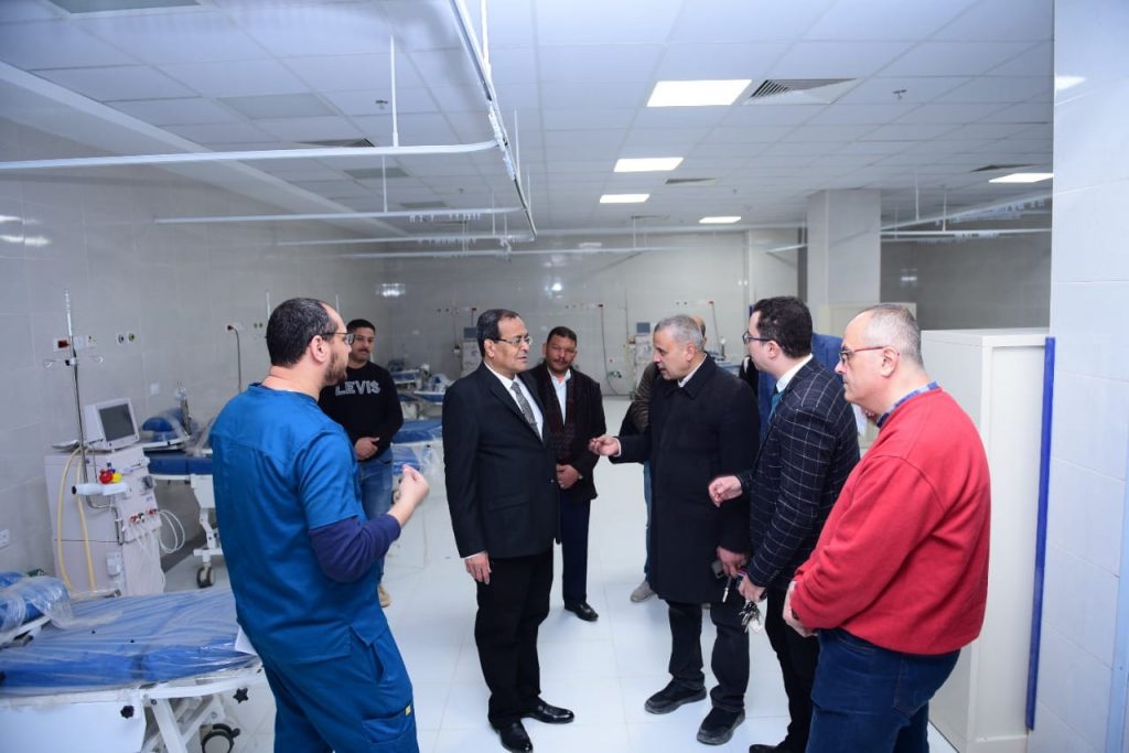 من جانبه قال الدكتور مصطفى هريدي، أن رئيس الجامعة قام بجولة موسعة شملت جانب كبير من أقسام المستشفى تعرف خلالها على الموقف التنفيذي على أرض الواقع، منها أقسام العناية المركزة بسعة ٥٠ سرير تشمل عناية ما بعد العمليات، وعناية إصابات، وعناية مركزة للقلب، و١٤ غرفة للعمليات الجراحية، وغرفتين مناظير جهاز هضمي، وعدد ٢٠ حضانة مبتسرين “أطفال حديثي الولادة”، ملحق بها قسم للولادة يضم غرفتين عمليات قيسرية و٤ غرف ولادة طبيعية، وكذلك مبنى للنفايات الخطرة، ووحدة للغسيل الكلوي وتضم ٣٢ ماكينة غسيل، والمشرحة، والمطبخ المركزي، ومحطة الغازات، ووحدة تعقيم، ومحطة للحريق والإطفاء، ومولد للكهرباء بطاقة ٢.٥ ميجاوات، وبنكاً للدم.
