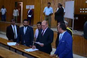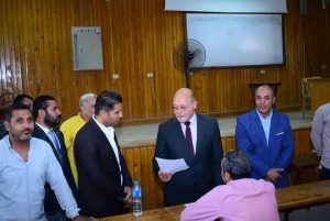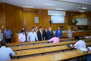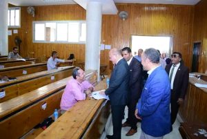 وخلال زيارته اطمئن الدكتور حسان النعماني على حسن سير وإنتظام العملية الإمتحانية بالكلية، موجهاً بضرورة الإلتزام بإتخاذ كافة التدابير اللازمة للإمتحانات وتوفير كافة الخدمات والتسهيلات للطلاب وتوفير أجواء هادئة مناسبة لهم، بما يساعدهم على أداء الإمتحانات بسهولة ويسر وإتخاذ التدابير الفورية لحل اي مشكلات قد تواجههم.