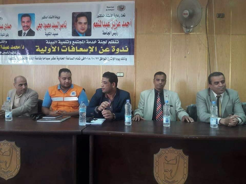 نظمت كلية الألسن بجامعة سوهاج بقاعة الاجتماعات الكبرى ندوة عن الاسعافات الأولية شارك فيها ٣٠٠ طالب لتوعية الطلاب بطرق الإسعاف الاولي للأفراد خلال الحوادث المختلفة بحضور الدكتور محمد عبدالهادي نائب مدير هيئة الاسعاف بسوهاج ولفيف من أعضاء هيئة التدريس ومعاونيهم صرح بذلك الدكتور ناصر حجي عميد الكلية.