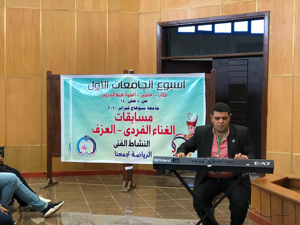 انطلقت فعاليات المسابقة الفنية في مجال العزف التي تنظمها جامعة سوهاج بمشاركة ١٢ جامعة مصرية ضمن فاعليات أسبوع الجامعات الأول للطلاب والعاملين وأعضاء هيئة التدريس في الفترة من ٨ إلى ١٤ فبراير الجاري، صرح بذلك انتصار أبو الدهب مدير النشاط الفنى والثقافي، وقالت أن المسابقة تقام بقاعة المؤتمرات الكبري بمقر الجامعة الجديد، وذلك بمشاركة ٧ أعضاء من هيئة التدريس من ٧ جامعات وهم سوهاج، المنيا، بني سويف، طنطا، أسيوط، جنوب الوادي والوادي الجديد.
