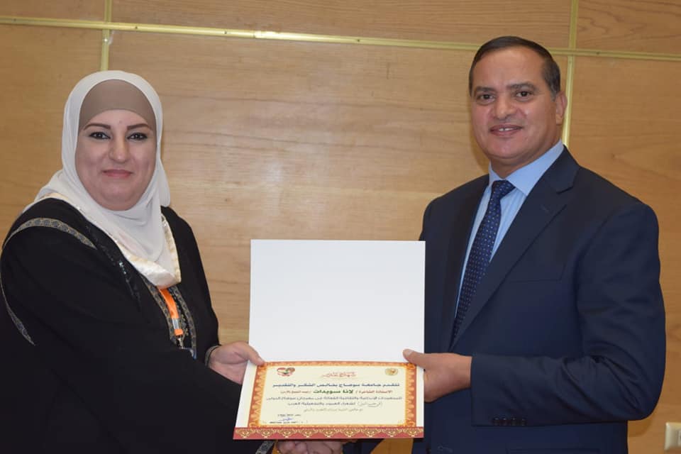 كرم عصر اليوم الدكتور احمد عزيز رئيس جامعة سوهاج ٢١ شاعر وشاعرة من مصر والوطن العربي في حفل ختام المهرجان الدولي الاول لشعراء العمود والتفعيلة العرب تحت شعار في “حب النيل” والذي أقيم على مدار يومين، بحضور الدكتور جمعة سعيد الفاخري وزير الثقافة الليبي، واسماعيل حقي الجنابي رئيس المهرجان، والدكتور صفا محمود السيد نائب رئيس الجامعة لشئون التعليم والطلاب، والدكتور فتوح خليل عميد كلية الآداب، واسماعيل حسانين العمدة مخرج المهرجان، ولفيف من عمداء الكليات وعدد كبير من الطلاب، وذلك بقاعة قناة السويس بالمركز الدولي للمؤتمرات بالجامعة الجديدة.