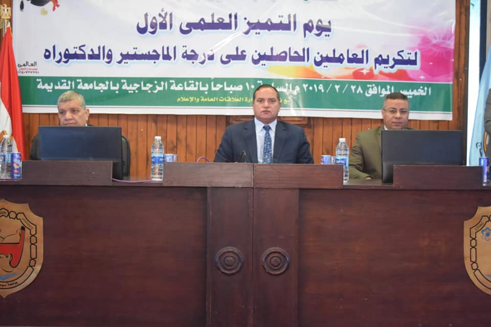 نظمت اليوم نقابة العاملين بجامعة سوهاج “يوم التميز العلمي الأول” لتكريم 185 من العاملين بالهيكل الإداري حملة الماجستير والدكتوراه.