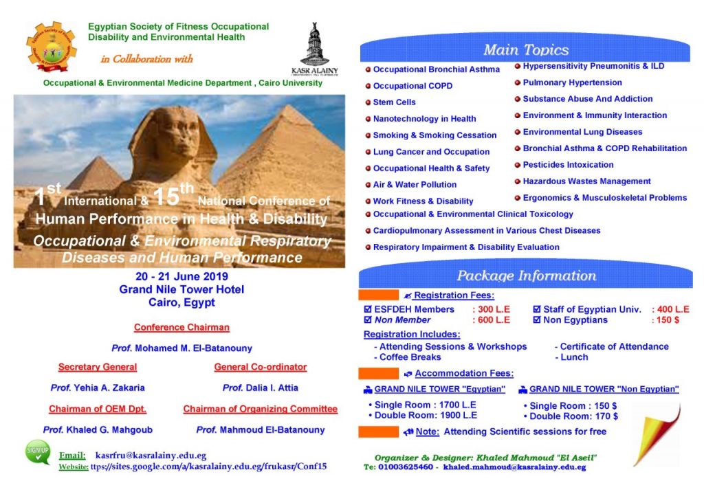 يعد هذا المؤتمر من أكبر التجمعات العلمية فى مجال طب الصناعات والأمراض المهنية والصدرية والطب الرياضي تحت عنوان