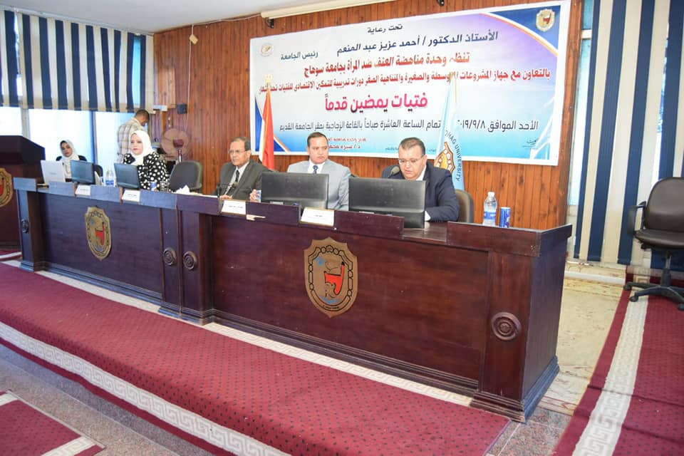 و في بداية اللقاء قال عزيز أن الجامعة هى منارة للتوعية والتثقيف داخل المجتمع إلى جانب دورها العلمى والبحثى، وجامعة سوهاج تعد أول جامعة حكومية تطلق برنامج للتمكين الإقتصادي للفتيات ، الأمر الذي يأتي تماشياََ مع رؤية واستراتيجية الدولة ٢٠٣٠ للتنمية المستدامة وتمكين المرأة المصرية فى مختلف المجالات، لذلك قامت الجامعة بتبني تنفيذ هذا البرنامج من أجل النهوض بالمرأة لتمكينها من أداء دور فعال وإيجابي لتحقيق تنمية مجتمعية اقتصادياً واجتماعياً وفي بناء أسرتها وإدماج جهودها في ريادة الأعمال، موضحاً أن البرنامج يهدف إلى تقليل الفجوة بين الجنسين في دفع الأجور، وزيادة فرص العمل للفتيات، وتسهيل حصولهن على القروض المصرفية، بالإضافة لإزالة الحواجز التي تعيق تقدم المرأة والقضاء على الفقر والوصول إلى النمو الاقتصادي الشامل.